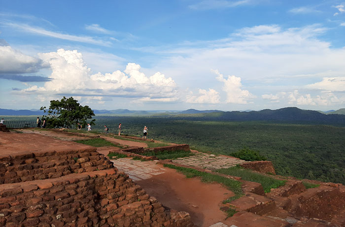 The amazing terraced summit of the rock covers 1.6 hectares or 4 arce (square feet 172223). Where did King Kashyapa build his palace. The palace complex consists of three distinct parts, which are the outer palace, the inner palace, and the palace garden. Today, only the low foundation structure remains, but the layout and ground plan of the palace are still clearly visible. A large, beautiful, rock-cut swimming pool, 27M-by-21M in size, and a smooth stone slab where it’s believed to be the place for meditation are still visible.